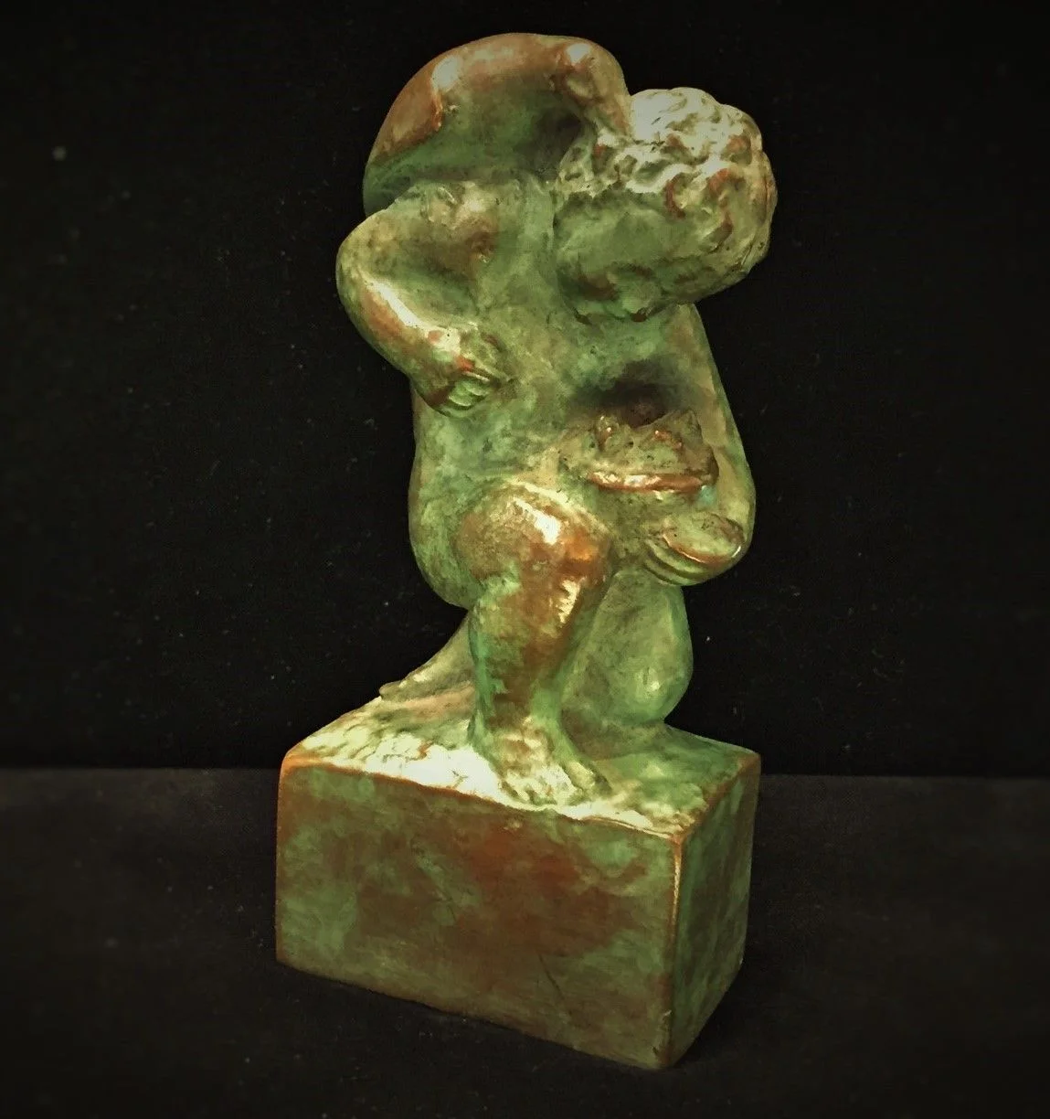 Rudolph Henn (German/American 1880-1955) was born in Olsbrücken, Germany. In 1901. Henn studied figural sculpture at the Academy of Applied Arts in Munich, counting Syrius Eberle and Heinrich Waderé among many other famous classmates. In 1907, he worked as a model maker for an ethnographic expedition to the Dutch East Indies. In 1908. after his studies he was freelancing in Munich until 191, when he was drafted as a soldier. After the World War I, Henn moved his workshop to Kaiserslautern and, after his marriage, two of his daughters were born. In 1929, during the Great Depression, the family immigrated to the United States and settled in New York City. Since 1936, Henn was actively involved in the artistic design of the Harlem River Houses residential complex that was developed under the Treasury Relief Art Project. There, he collaborated with Heinz Warnecke with Theodore Barbarossa, Erwin Springweiler and Richmond Barthé. In addition to large-scale monuments in public spaces, Henn continued to create a smaller-scale bronze pieces. Many of his bronze works are of children, including fountain sculptures.