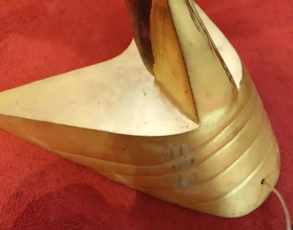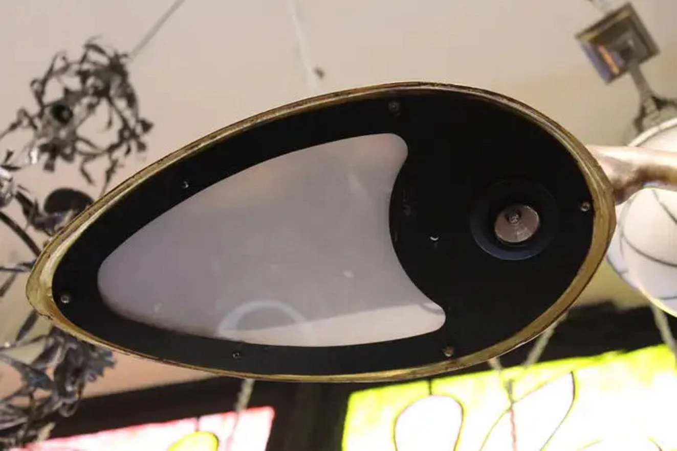 Beautiful patina with bronze appearance to original finish. Will work surprisingly in harmony with a mid-century modern room!