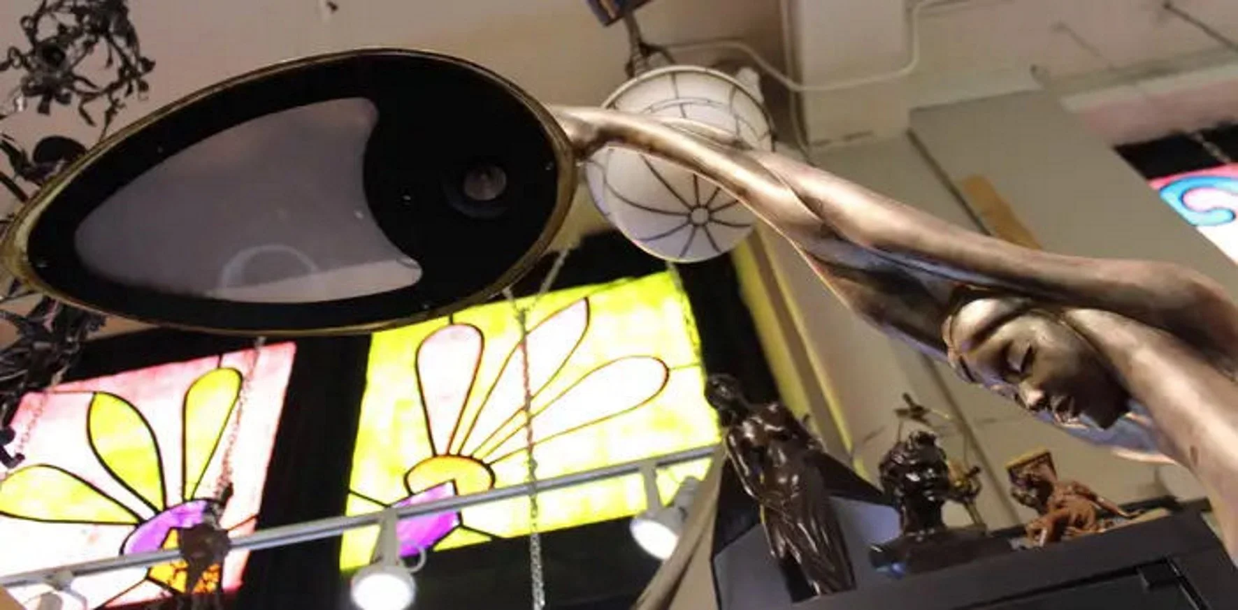 Attributed to Bradley & Hubbard. This rare ‘Elephant Lamp’ features a classic Bradley & Hubbard design of three elephants, holding a sphere.