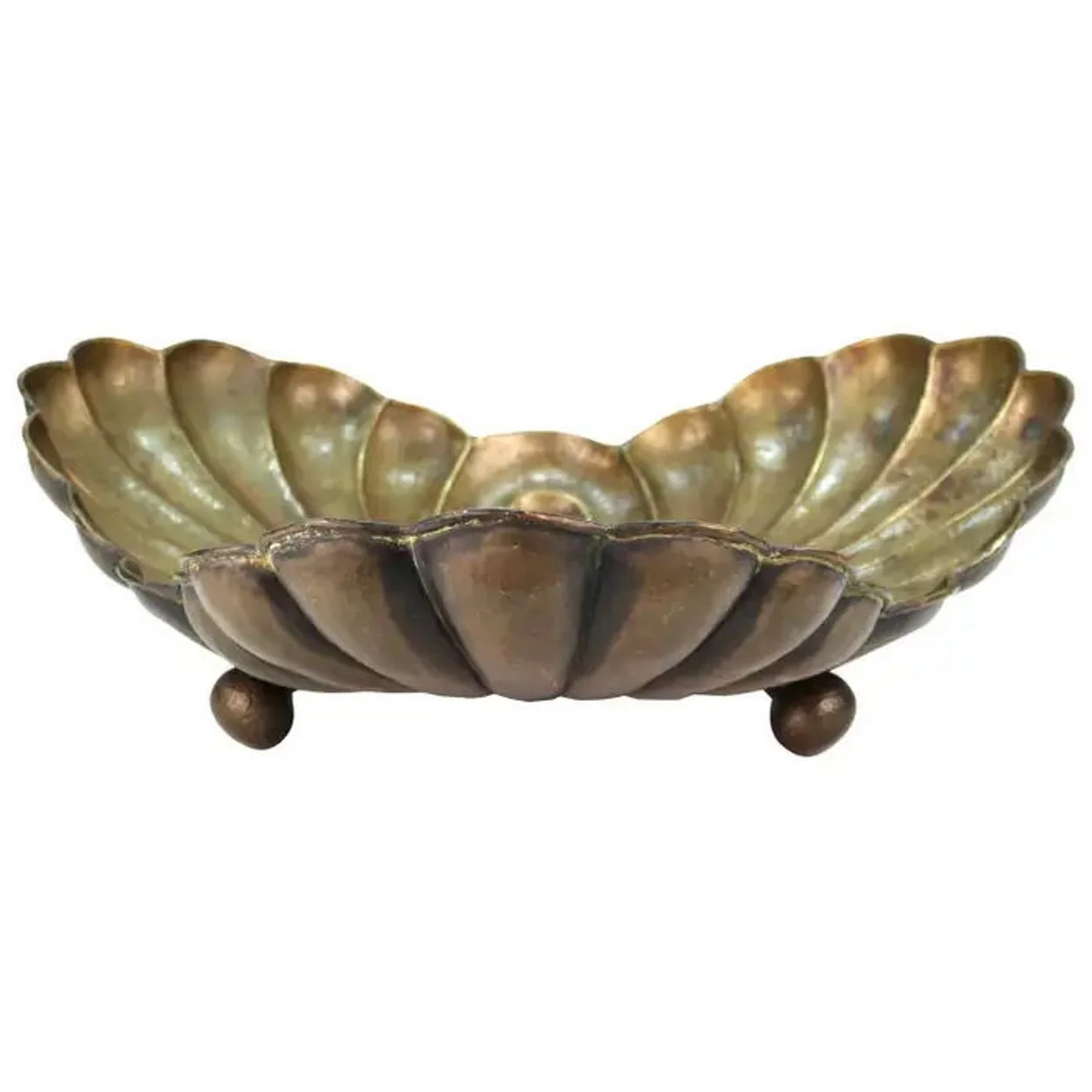 A monumental Modernist brass vessel by Italian designer and master metalworker Egidio Casagrande (1911–1962), created in the 1930s–1940s. Executed in repoussé, the piece showcases Casagrande’s exceptional craftsmanship, with richly worked surfaces and a commanding sculptural presence.
