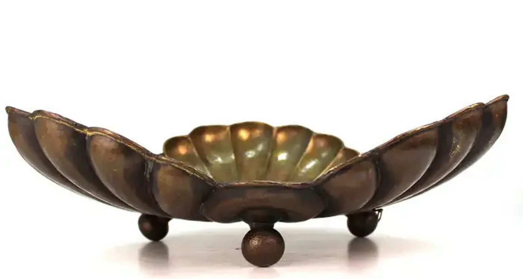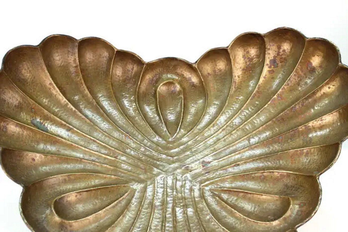 The piece retains a beautiful natural patina, enhancing the depth and character of the brass, and bears an embossed maker’s mark on the underside. It remains in very good condition, with minor, age-appropriate wear consistent with its period.