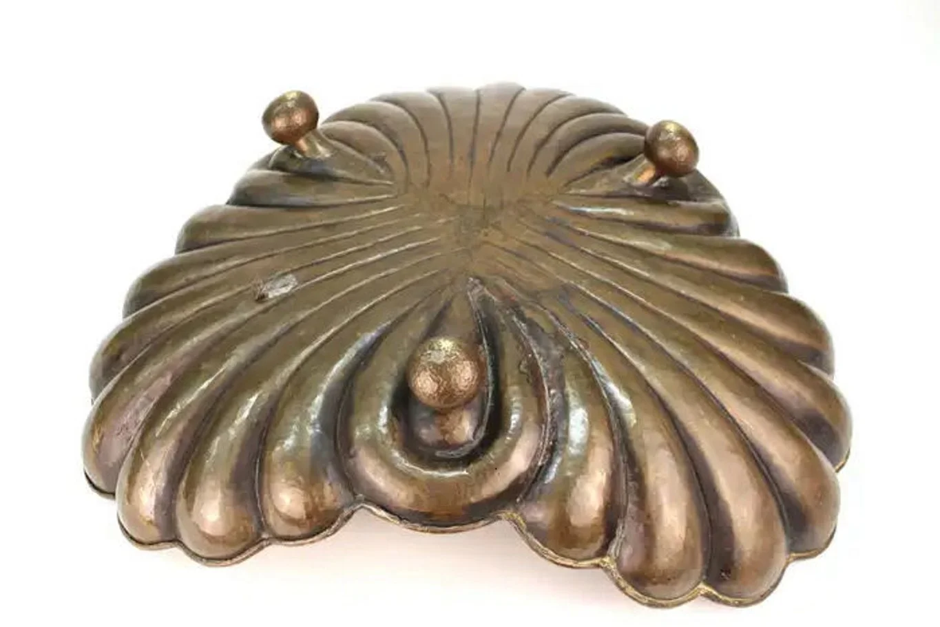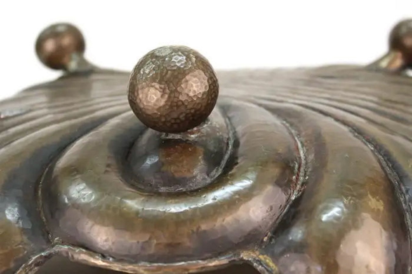 Wonderful in its unique Jugenstil style and semi-spherical design, this stunning repose hand-hammered brass box with cover was made in Austria (probably, Vienna), circa 1900. Unmarked. Excellent condition with only minor signs of usage. Would make a gorgeous addition to any collection!